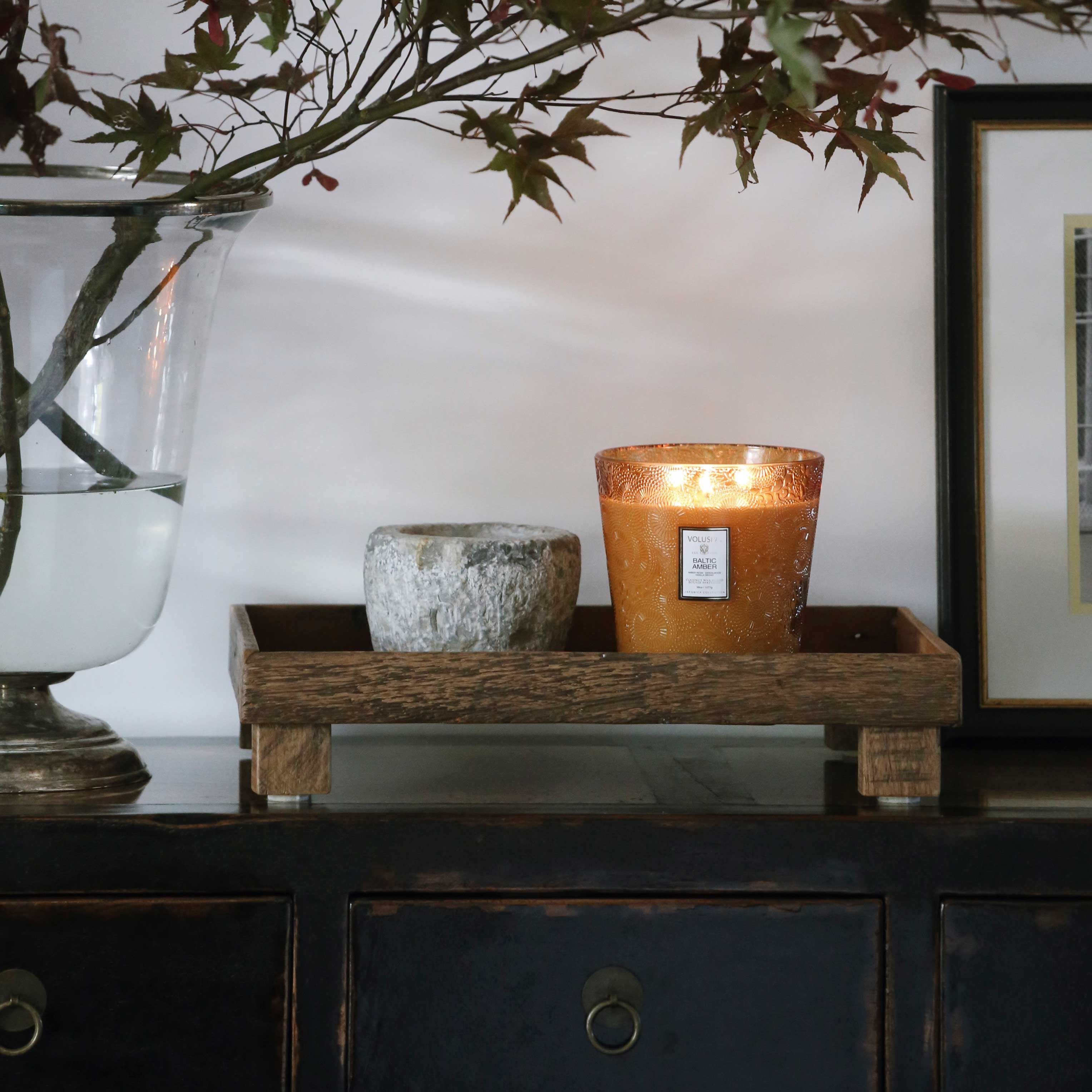 Voluspa’s unique coconut wax blend is housed in a 38 oz. embossed glass jar with decorative gift box. Our three wicks allow you to enjoy fragrance throw for 80 hours. Our candles are handcrafted in the United States and feature our proprietary, clean-burning coconut wax blend and natural wicks. Our products are free of phthalates, parabens and sulfates and are never tested on animals. Up-cycle this best seller into a keepsake after the last burn.