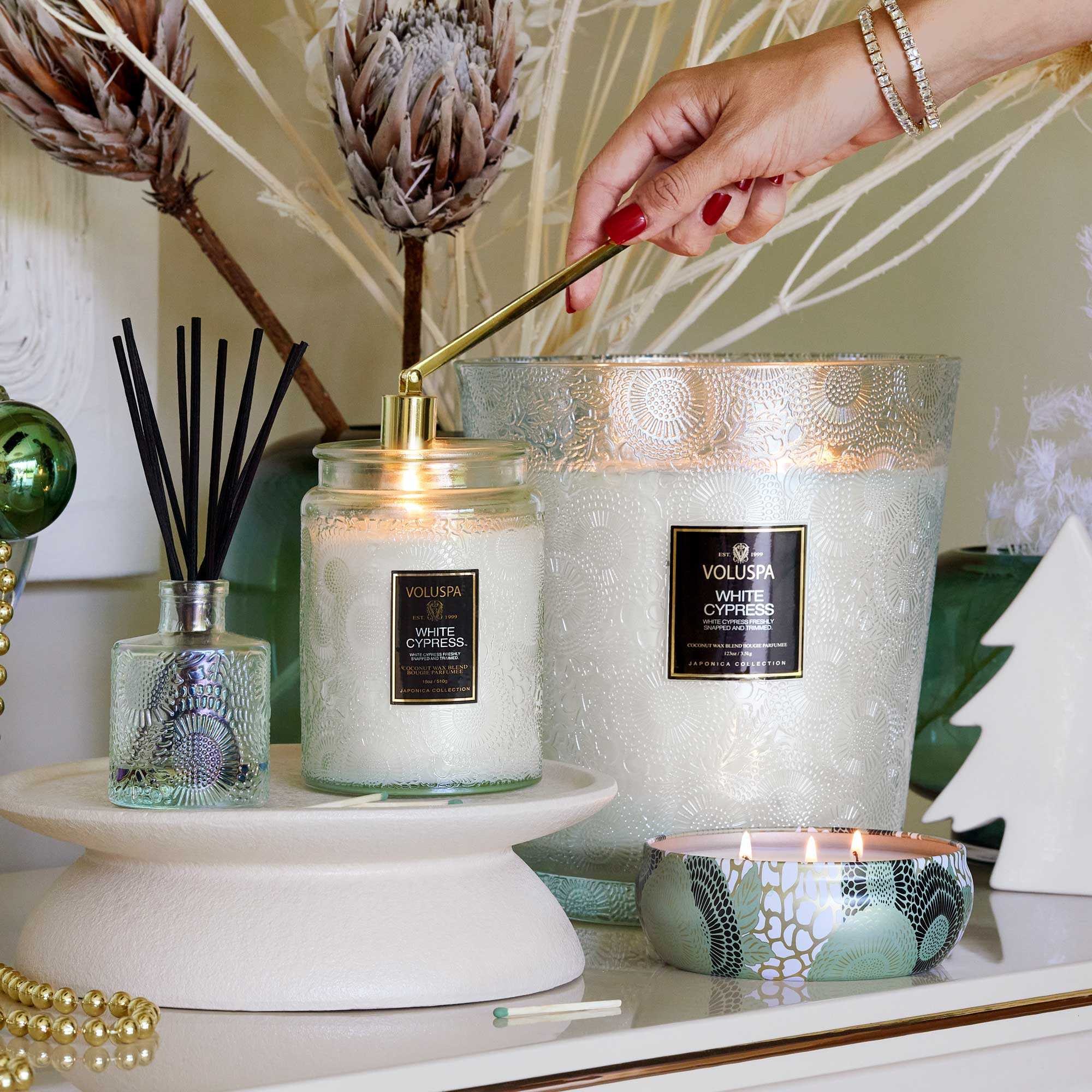Safely extinguish your candle with ease. The sleek design makes it a welcome addition to any nightstand or coffee table.