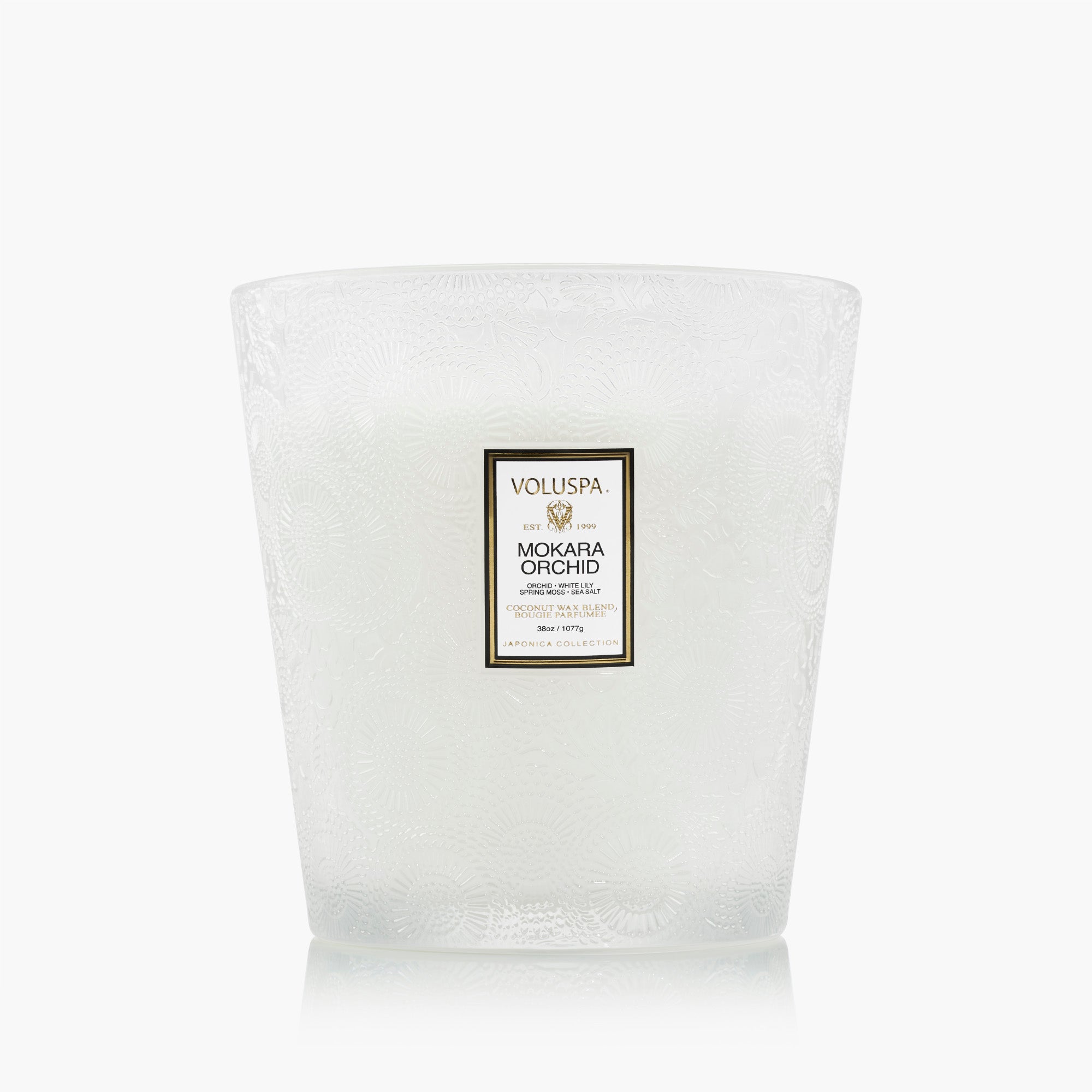 Voluspa’s unique coconut wax blend is housed in a 38 oz. embossed glass jar with decorative gift box. Our three wicks allow you to enjoy fragrance throw for 80 hours. Our candles are handcrafted in the United States and feature our proprietary, clean-burning coconut wax blend and natural wicks. Our products are free of phthalates, parabens and sulfates and are never tested on animals. Up-cycle this best seller into a keepsake after the last burn.